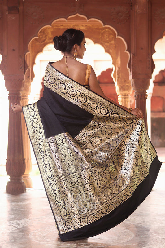 Bottle Green Mashru Silk Banarasi Saree With Meena bootas