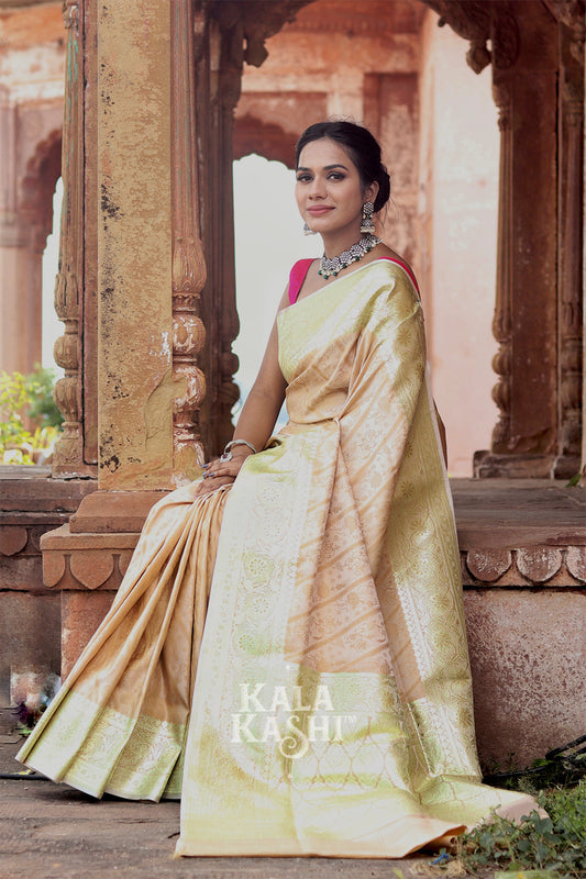 Cream Mashru Silk Banarasi Saree With Meena bootas