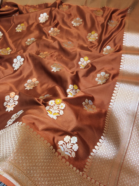 Coffee brown Mashru Silk Banarasi Saree With Meena bootas