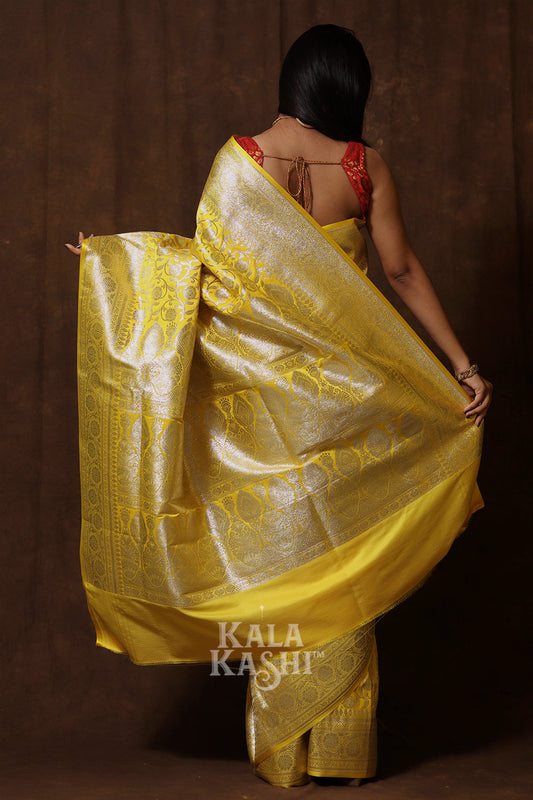 Lime Yellow Hand Woven Katan Silk Saree