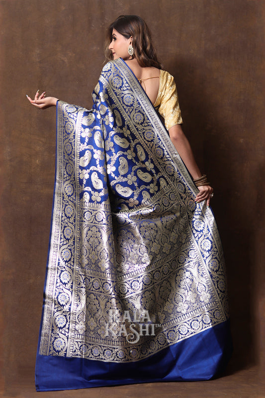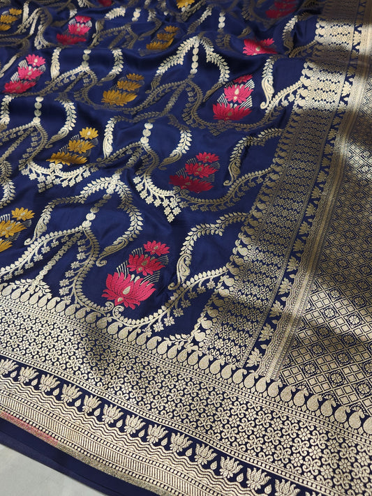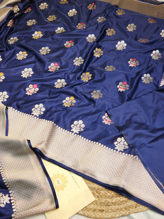 Navy Blue Mashru Silk Banarasi Saree With Meena bootas