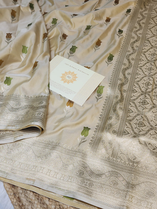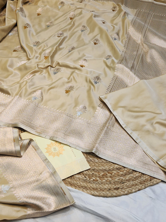 Tan color Mashru Silk Banarasi Saree With Meena bootas