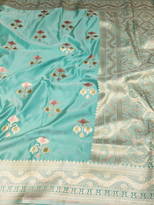 Sea Green Mashru Silk Banarasi Saree With Meena bootas