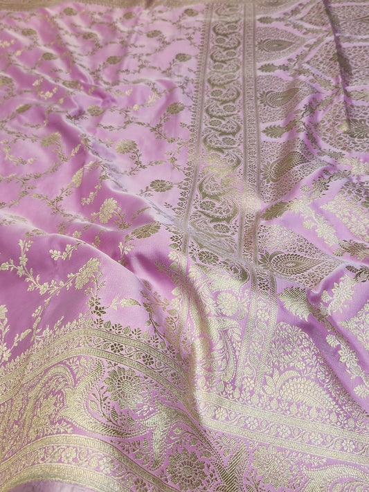 Soft Baby Pink Color Mashru Silk Banarasi Saree With Jaal Pattern