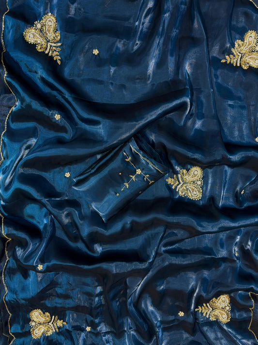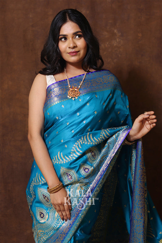 Blue Hand Woven Banarasi Cotton Silk Saree