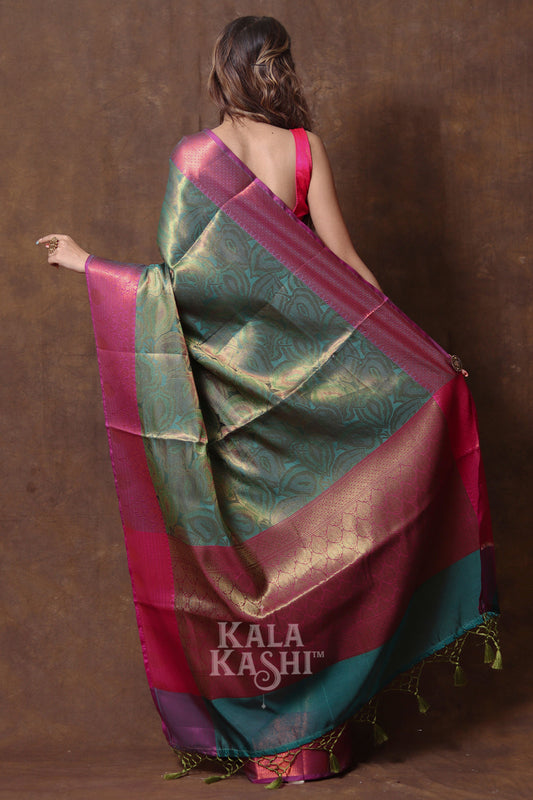 Bottle Green Hand Woven Kanjivaram Silk Saree