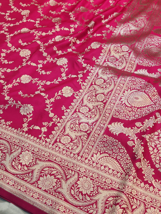 Bridal Rani Mashru katan Silk Banarasi Saree With Jaal Pattern