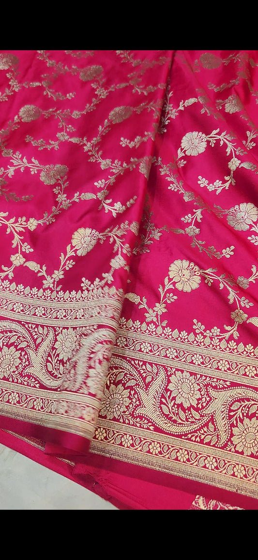 Hot Pink Mashru Silk Banarasi Saree Jaal Pattern
