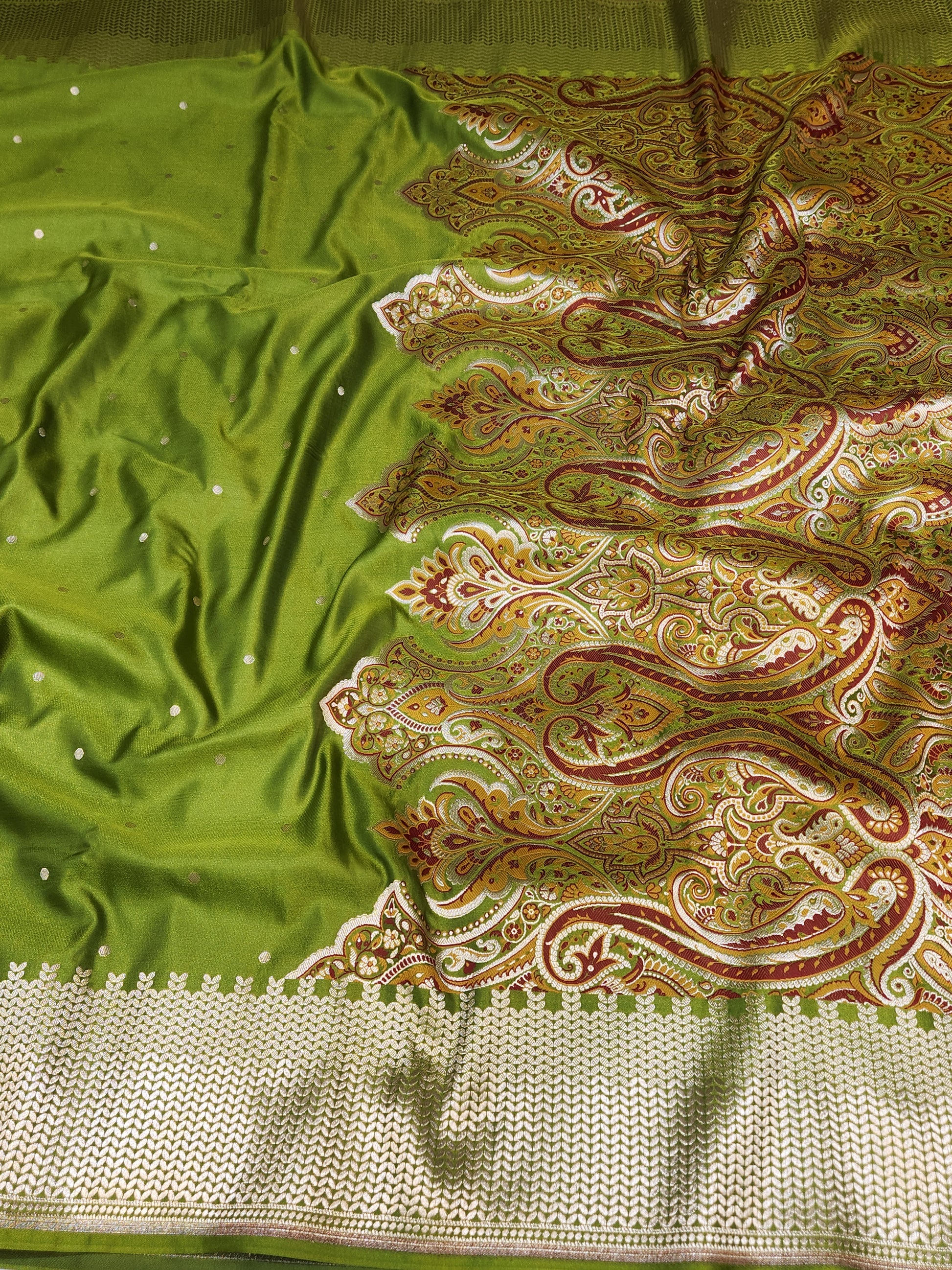 Enchanting mustord Colour kimkhab Mashru Silk Banarasi Saree with all over booti Pattern Allover