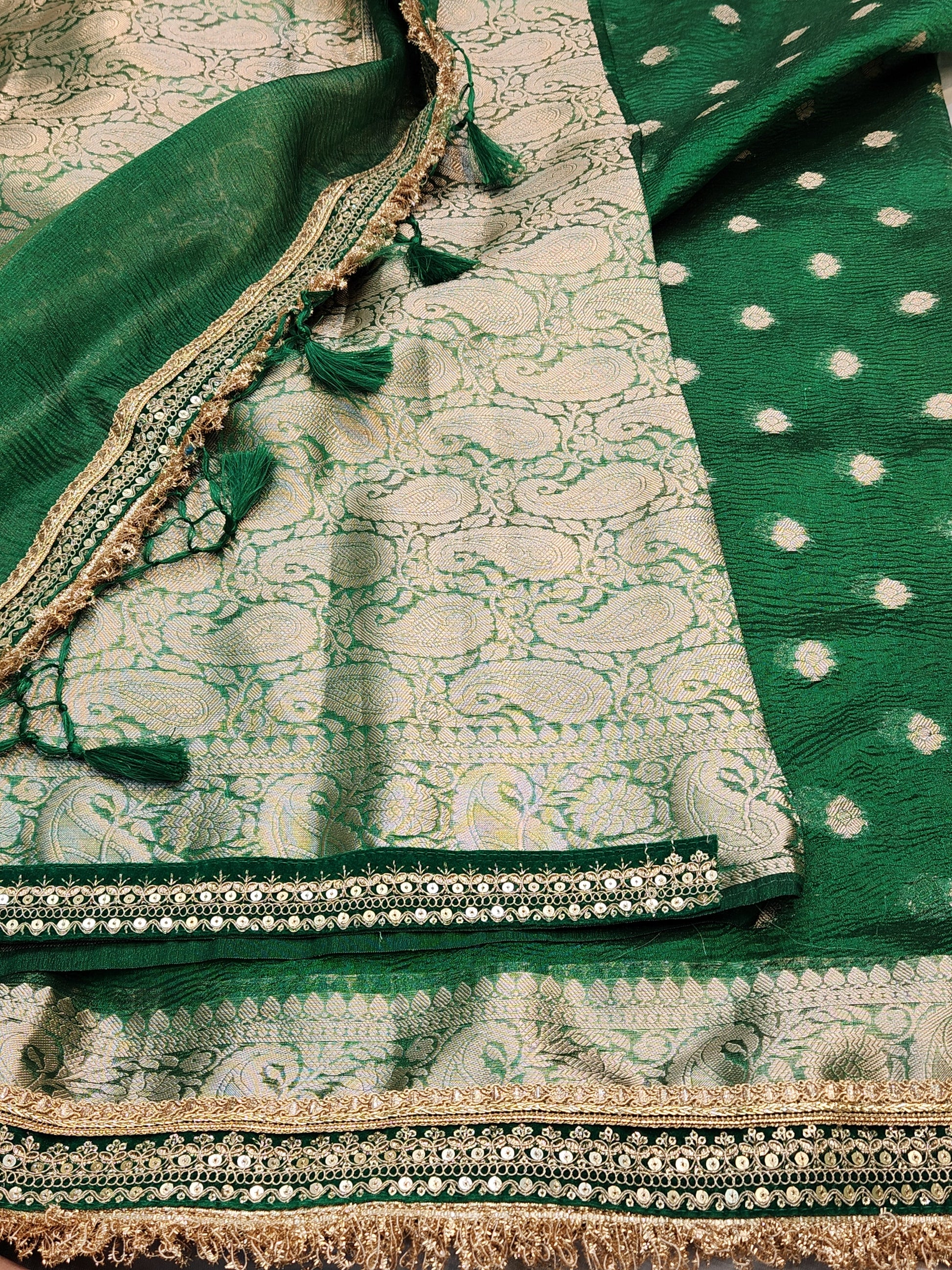 Stunningly gorgeous Maharani tissue silk saree with intricate velvet handwork laces, adding a luxurious touch...