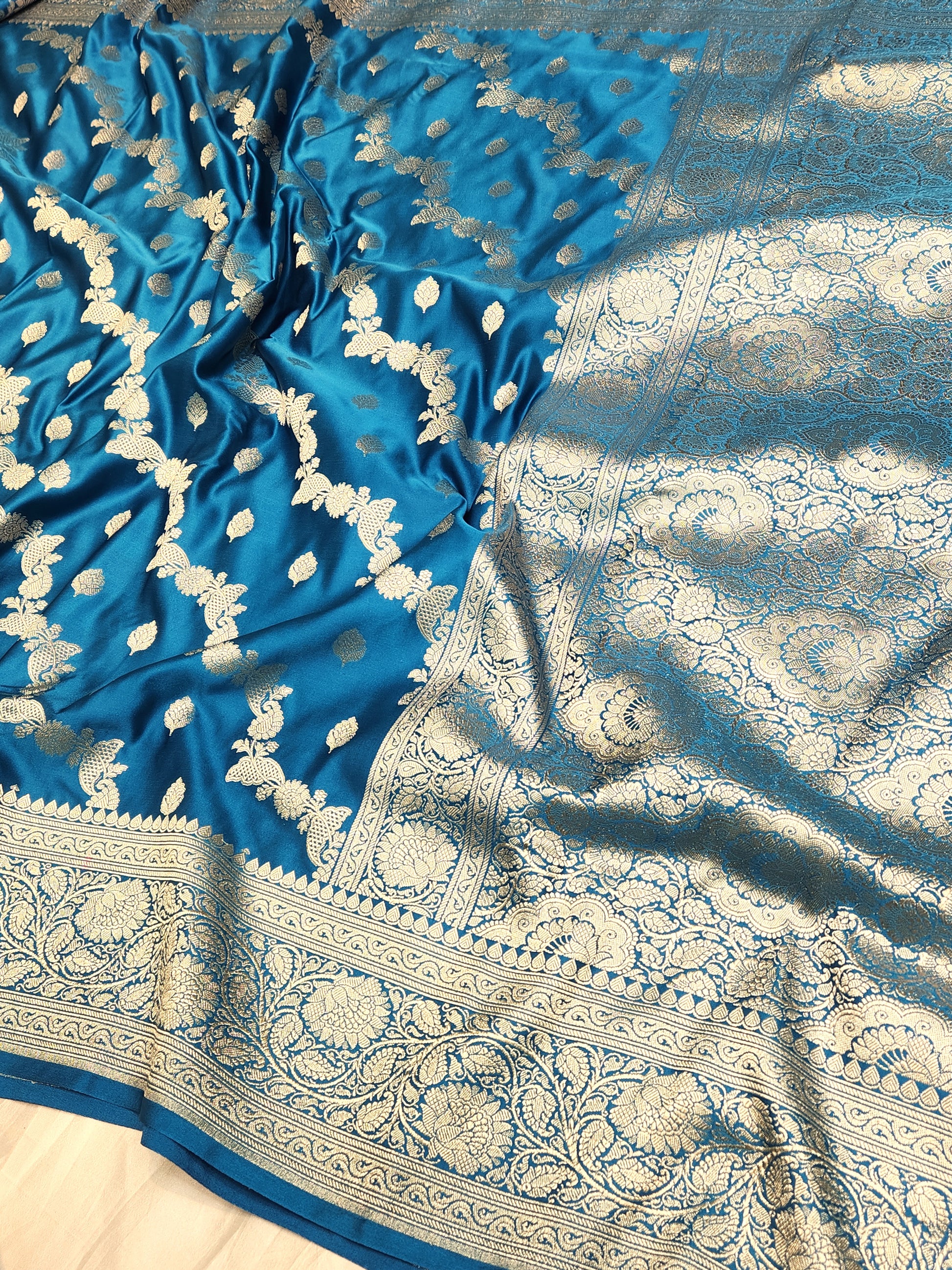 Mesmerizing german blue Mashru Silk Saree