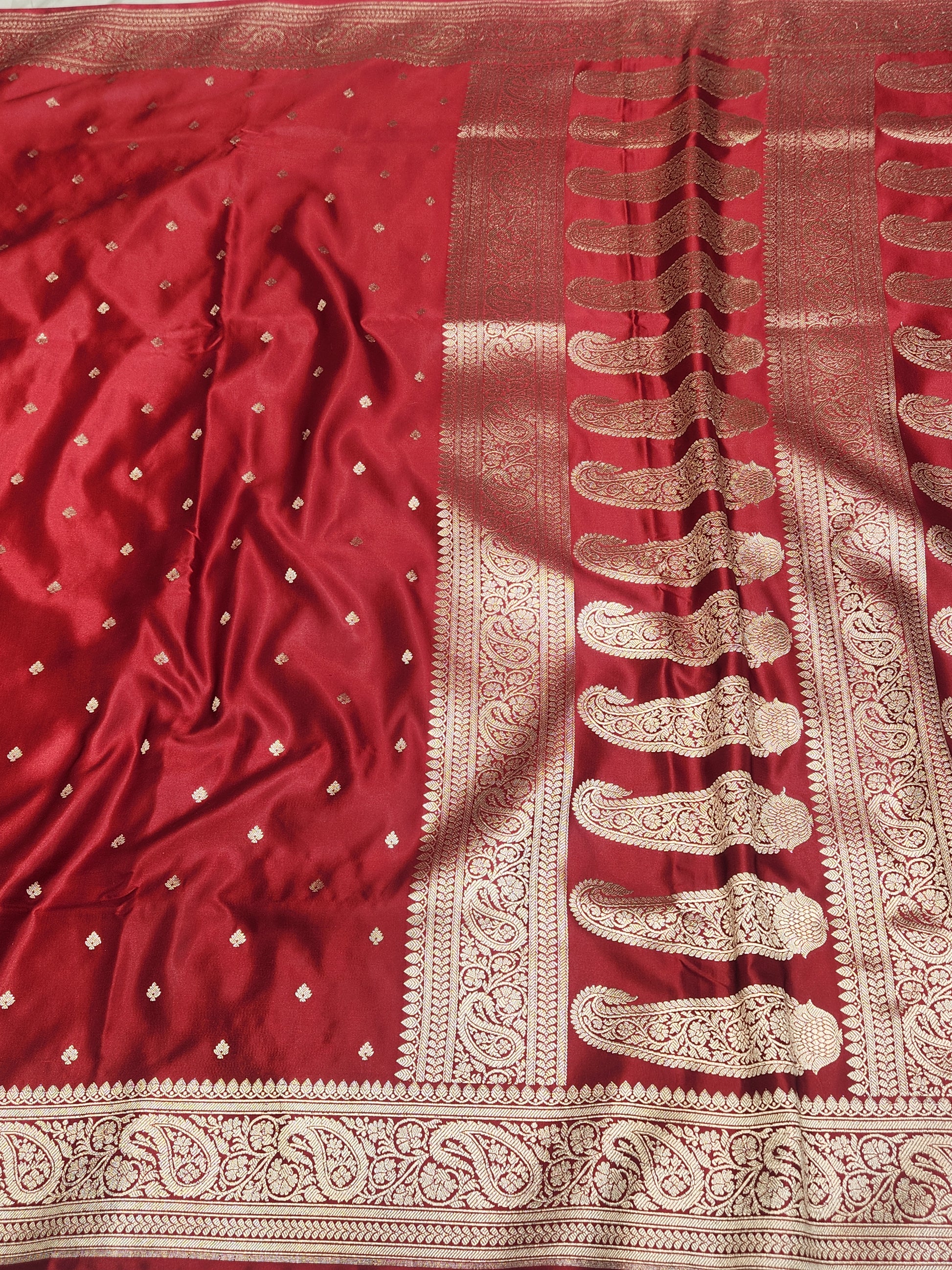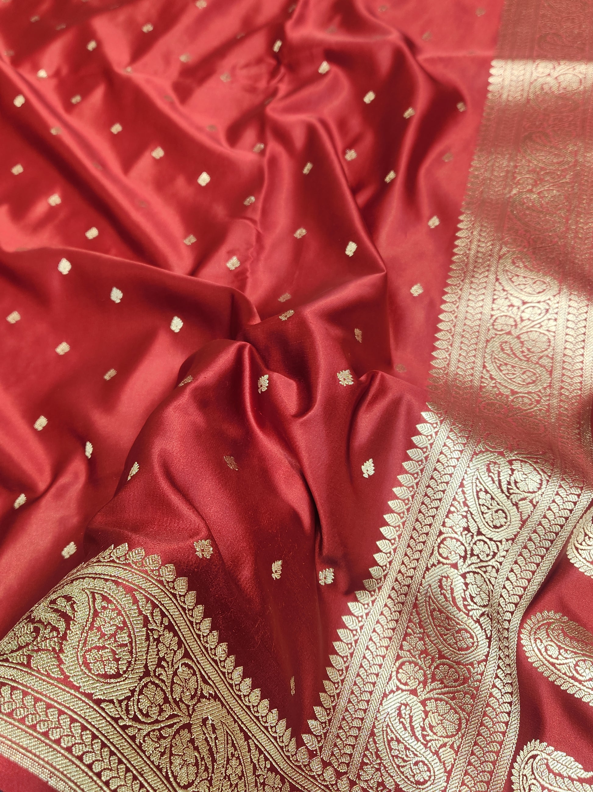 Mashru silk has a silk warp and a catalon weft and warp-faced fabric, or satin which means that the face of the cloth is predominantly silk and the reverse is catalon. It is a lightweight fabric and as soft as butter.